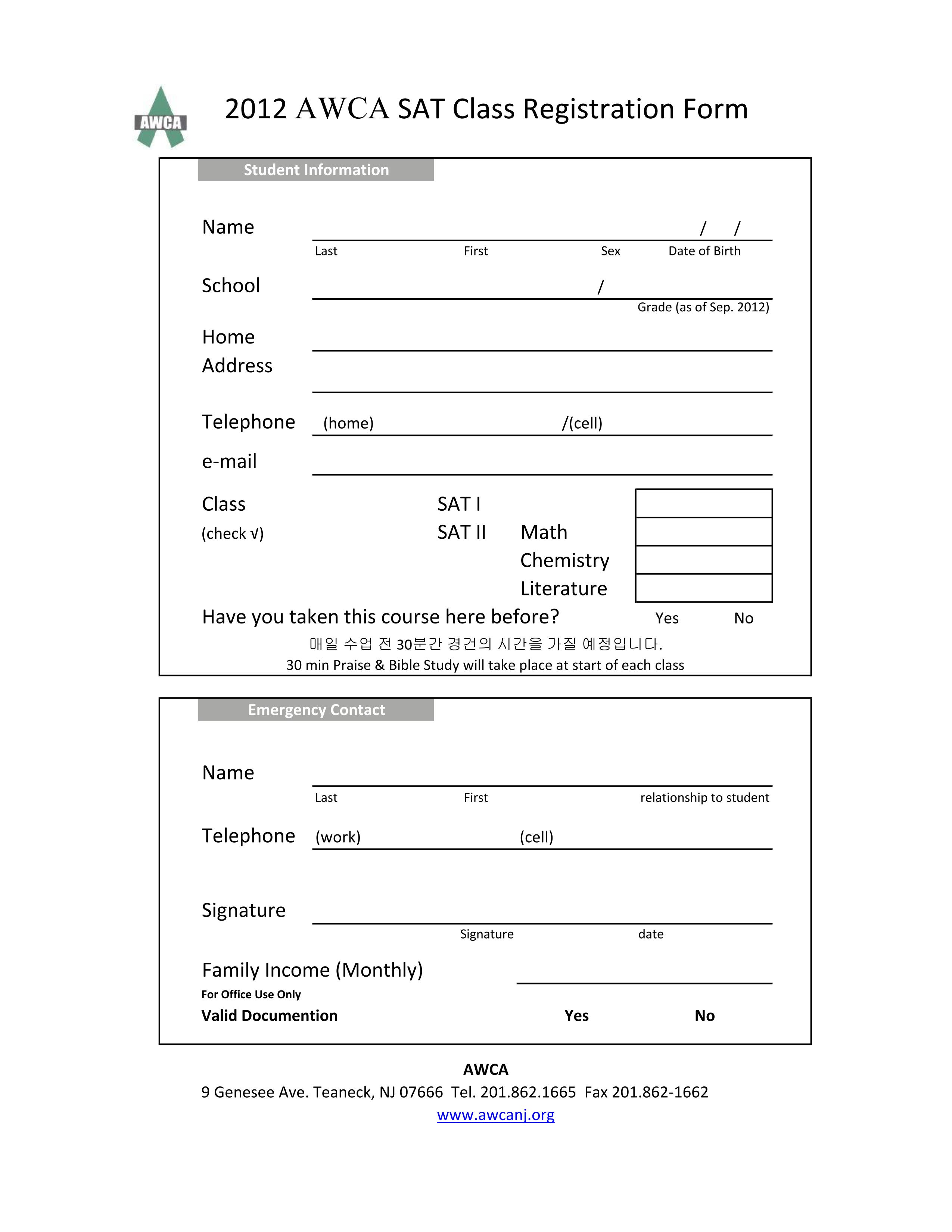 ■ 장소 : AWCA 본관 (9 Genesee Ave. Teaneck, NJ 07666)