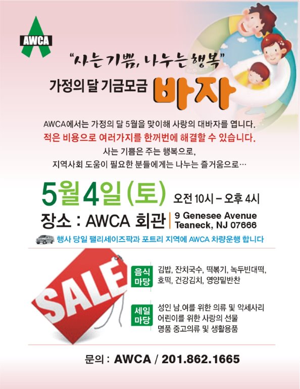 AWCA에서는 가정의 달 5월을 맞이해 사랑의 대바자를 엽니다.