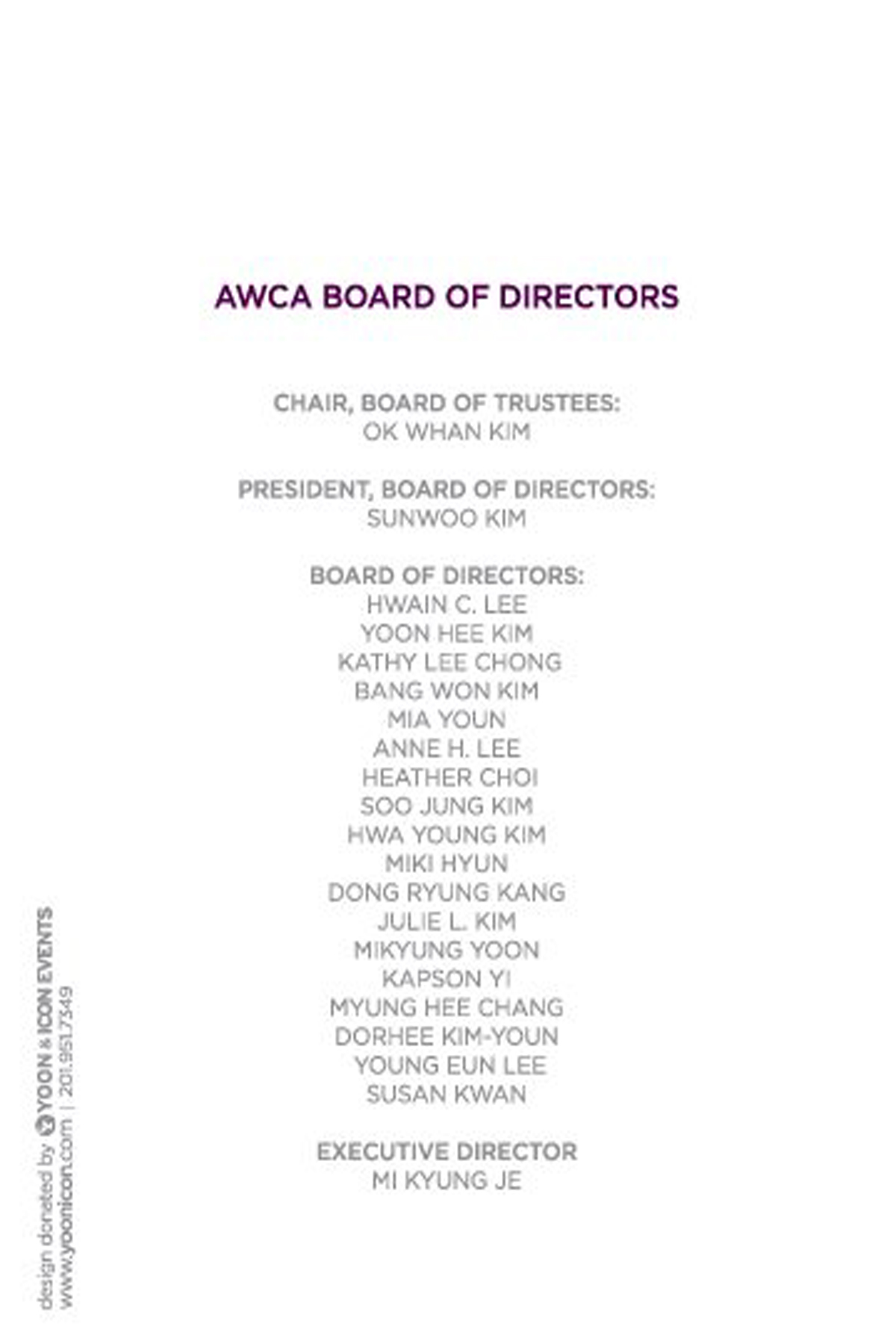 일정: 6:30 PM 칵테일 리셉션 & Silent 경매